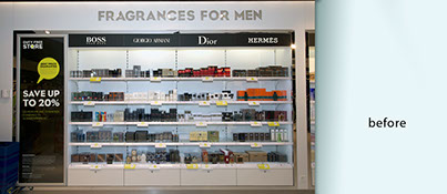 The part of the Arrivals store dedicated to male fragrances and skin care products blended in with the zone for women's products. The goal was to attract more males business travelers through a clear distinction from the women's corner and through upgrading the design. Different concepts were developed and the 'vintage barbershop' theme was selected and implemented. This was done without doing any heavy construction work and maintaining a very low budget.