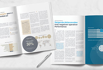 Redesign of IFBC Dialog, a publication containing financial analyses of the Swiss market. IFBC briefed us to modernize the overall look, introduce a magazine-style layout and create custom infographics.
