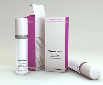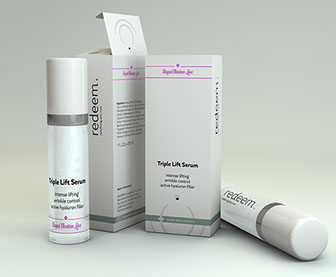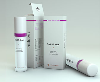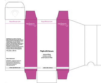 Swiss cosmeceutical brand 'Redeem' asked to develop a few packaging designs for their top seller Triple Lift Serum, using the existing container and cardboard box. We created 3D models to better illustrate the flat-pack design.