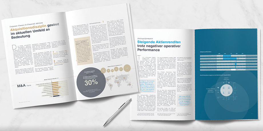 Redesign of IFBC Dialog, a publication containing financial analyses of the Swiss market. IFBC briefed us to modernize the overall look, introduce a completely new magazine-style layout, and create custom infographics.